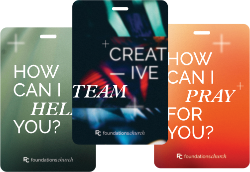 Across the church, we used similar and complementary elements like handwritten fonts, vertical footnotes, simple symbols, and circular shapes to align the ministries—Young Adults, Youth, Kids, Women, Men, and Connect Groups—under one visual umbrella.